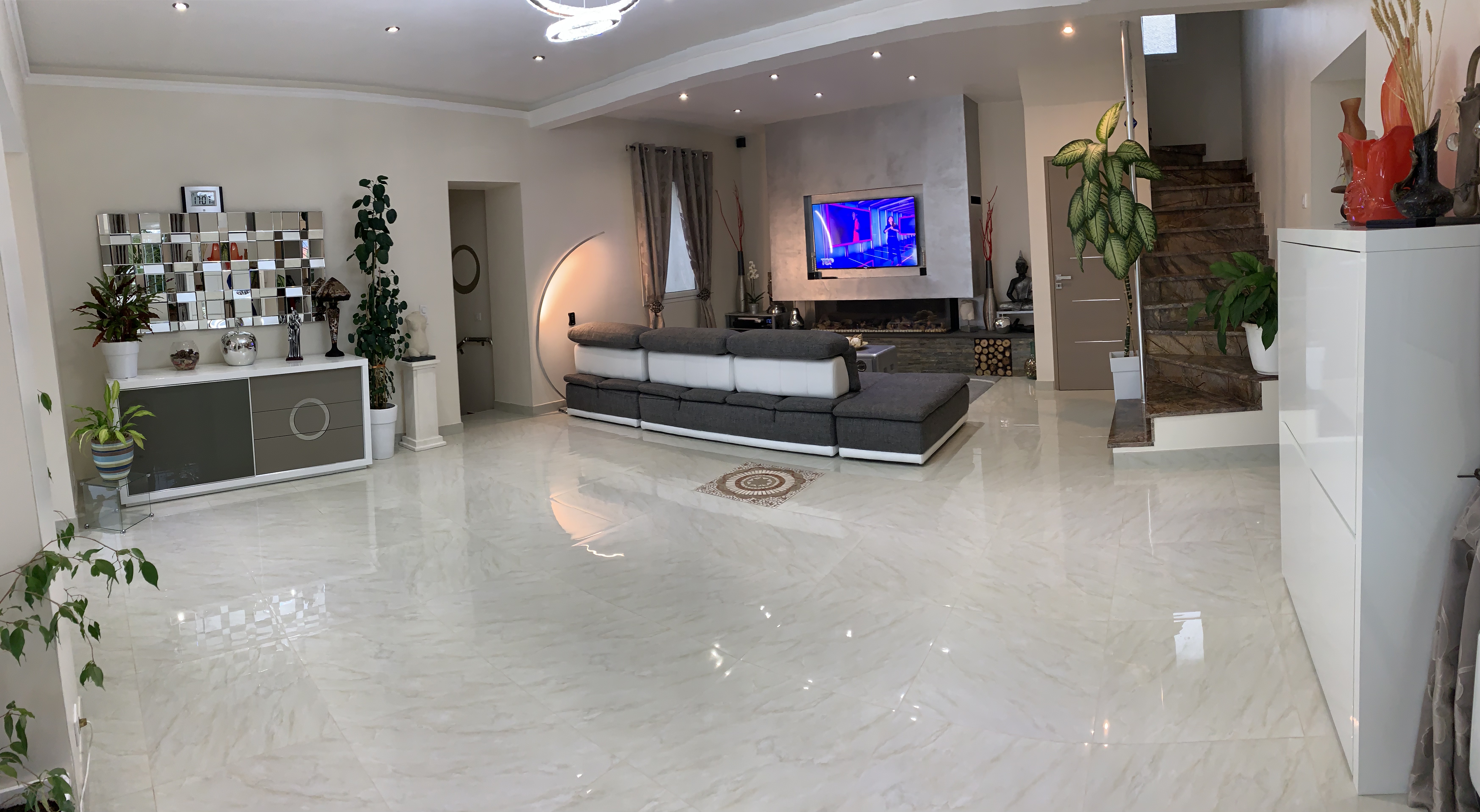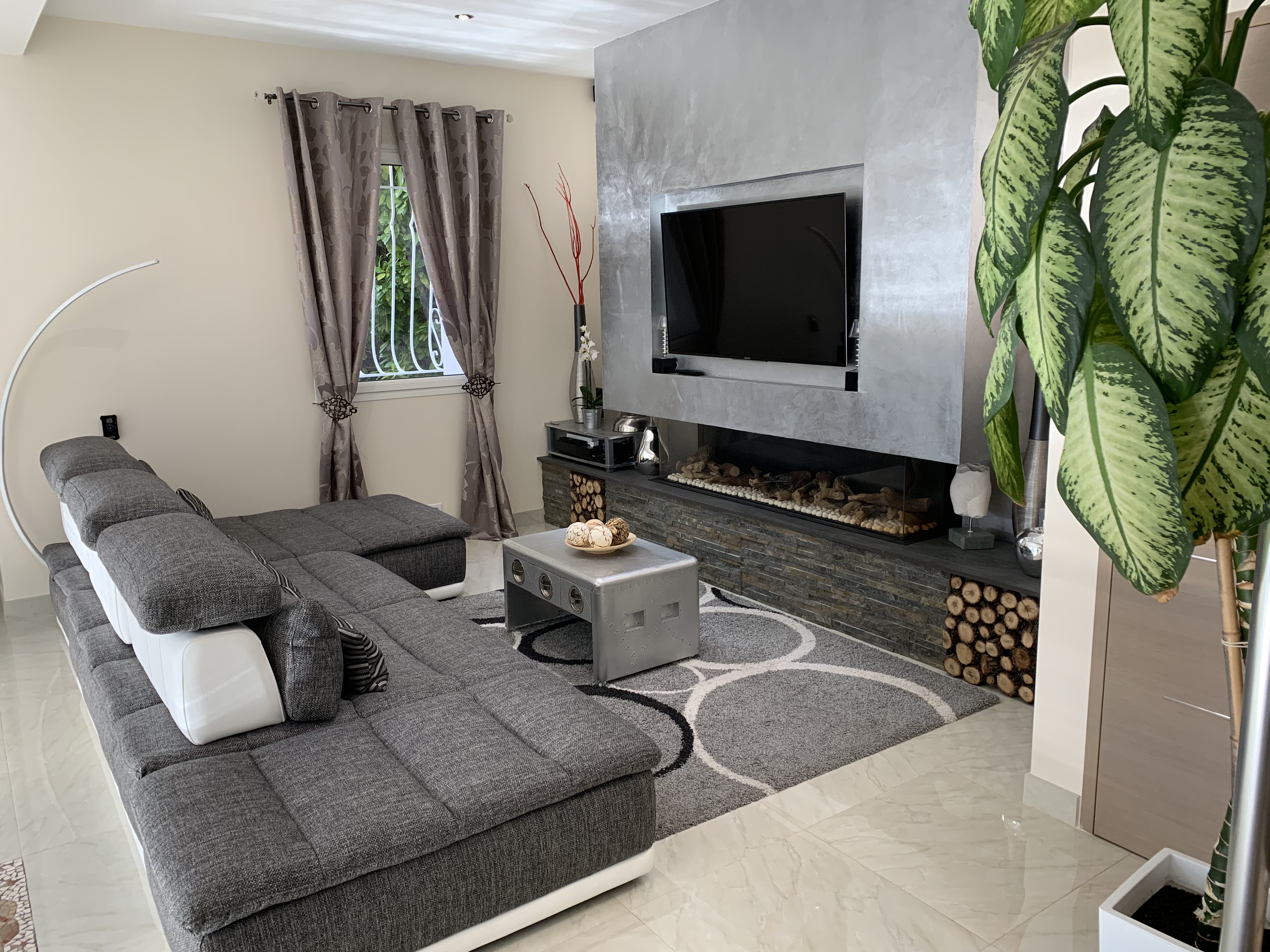 Large living-room and dining area of 70 square meter with a chimney (TV and AC)